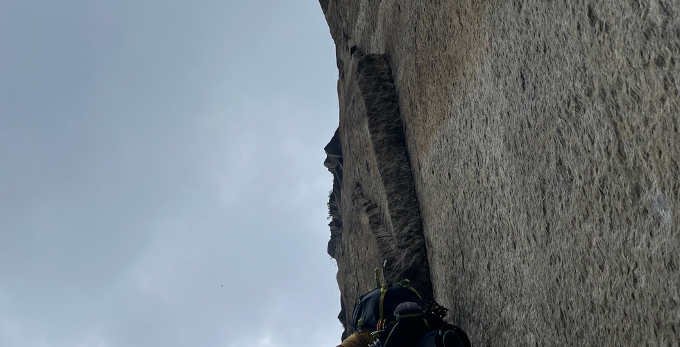 VII Tiro: Diedro rovescio e poi ristabilimento delicato in placca con traverso verso destra. 6c+